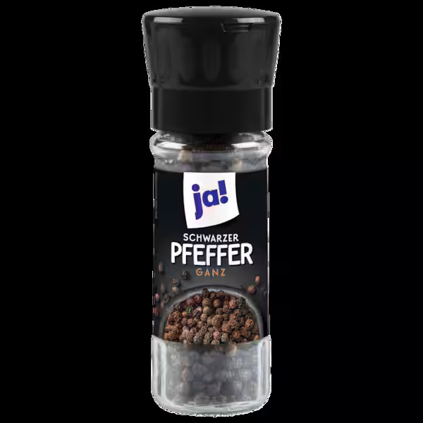 ja! فلفل أسود، حب كامل مع مطحنة الفلفل الأسود، 50 غرامًا كاملة