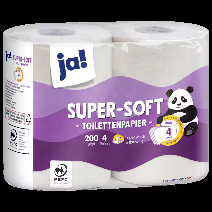 ja! سوبر سوفت ورق تواليت فائق النعومة، 4 طبقات، 4 × 200 ورقة