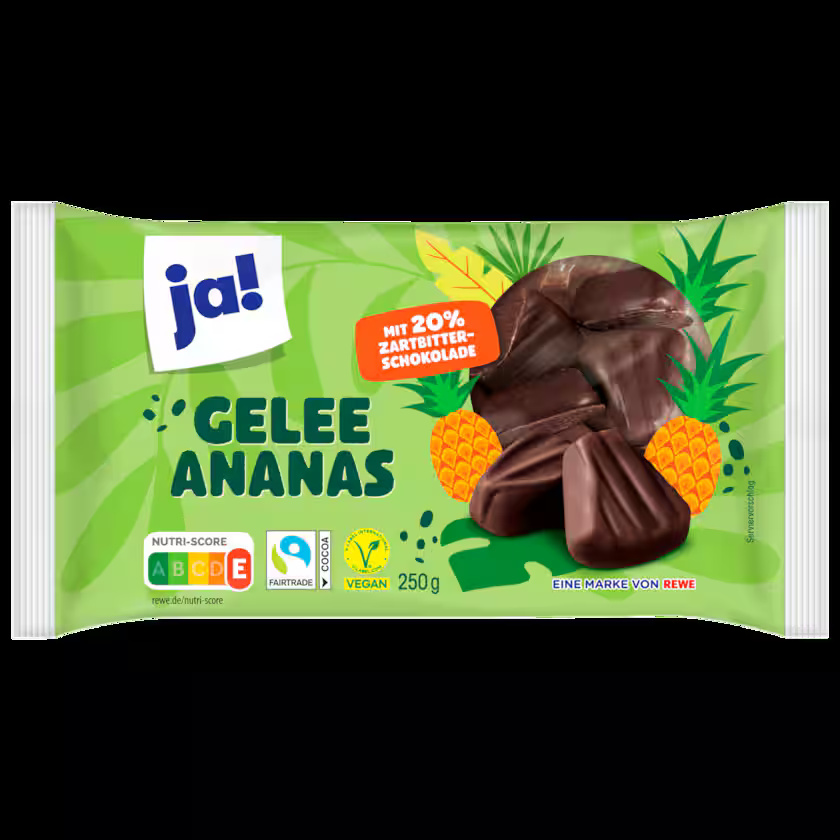 منتج جيلي بنكهة الأناناس، مغطى بشوكولاتة داكنة بنسبة 20%