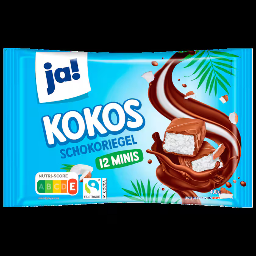 ja! ألواح شوكولاتة جوز الهند، 12 قطعة صغيرة، 400 غرام