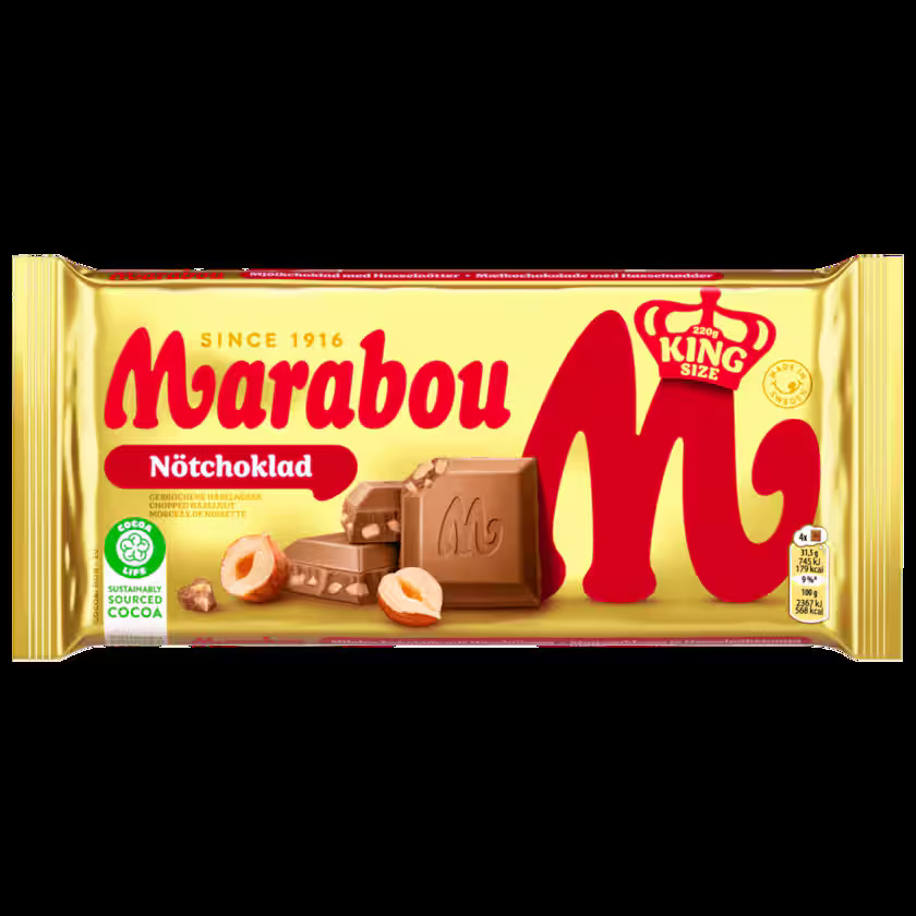 مارابو: لوح نوتشوكلاد شوكولاتة من المكسرات والحليب الكامل 220 غرام