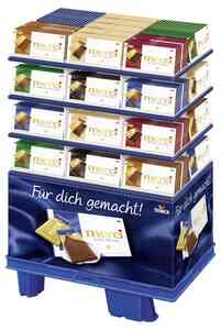 مزيج الشوكولاتة: شوكولاتة بالحليب مع حبات بندق كاملة (16%). نسبة الكاكاو: 30% كحد أدنى في شوكولاتة الحليب. شوكولاتة شبه حلوة مع حبات بندق كاملة (16%). نسبة الكاكاو: 50% كحد أدنى في الشوكولاتة شبه الحلوة. شوكولاتة بيضاء مع حبات بندق كاملة.