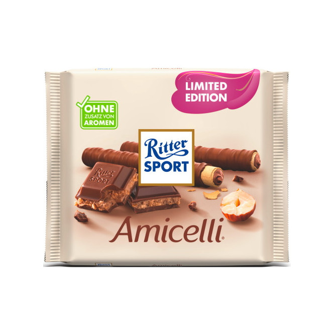 شوكولاتة حليب محشوة بكريمة البندق (40.5%) وقطع الويفر (4.5%).