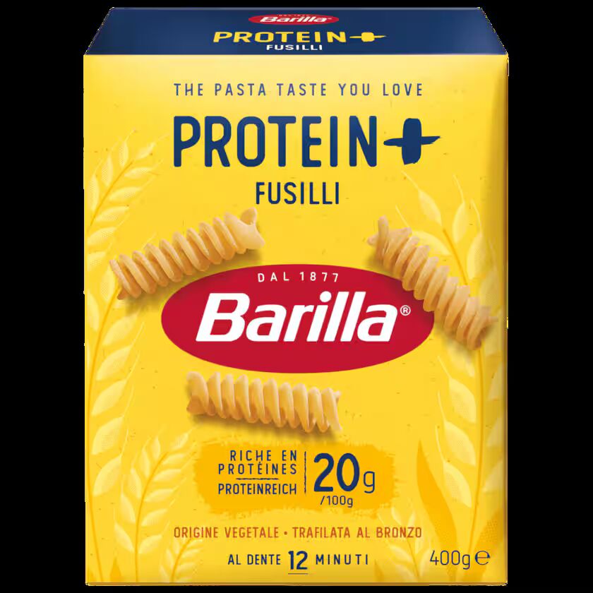 باريلا فوسيلي بروتين بلس 400 غرام معكرونة مصنوعة من سميد القمح القاسي مع بروتين البازلاء.