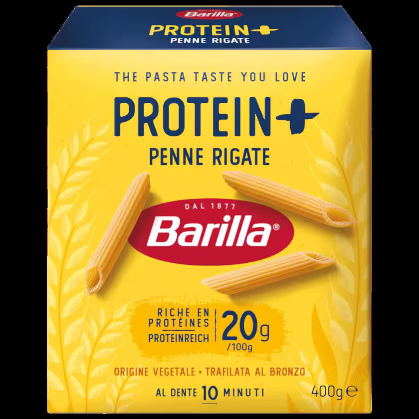 باريلا بيني ريجات بروتين بلس 400 جرام معكرونة مصنوعة من سميد القمح القاسي مع بروتين البازلاء.
