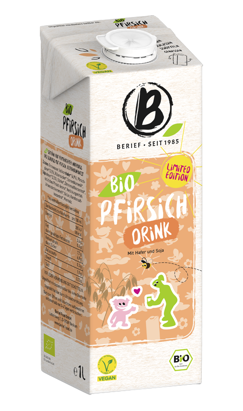 ماء الشرب، شوفان كامل الحبة* (4.9%)، هريس الخوخ* (3.5%)، سكر البنجر*، زيت دوار الشمس*، فول الصويا* (2.3%)، نشا*، مركز عصير الليمون*، نكهة الخوخ الطبيعية*، مواد مكثفة: صمغ الخروب*، صمغ جيلان؛ مركز عصير الجزر*، ملح البحر.