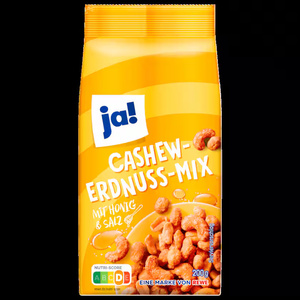ja! الكاجو وحبوب الفول السوداني مع العسل، محمصة ومملحة 200 غرام