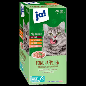 ja! طعام للقطط، قطع صغيرة لحم بقري ودجاج وسمك، 4 أنواع، 8 × 100 غرام