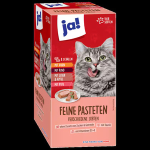 ja! طعام القطط، فطائر فاخرة، 4 أصناف، 8 × 100 جرام