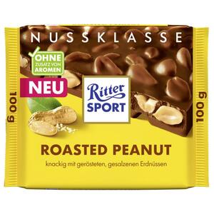 ريتر سبورت لوح شوكولاتة الفول السوداني المحمص - 100 غرام شوكولاتة كوفيرتور مع قطع الفول السوداني المحمص والمملح