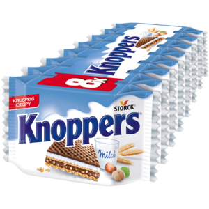 كنوبرز - قطع ويفر محشوة كريمة الحليب وحشوة كريمة النوجا - 8 قطع + 1 مجانا - 225 غرام