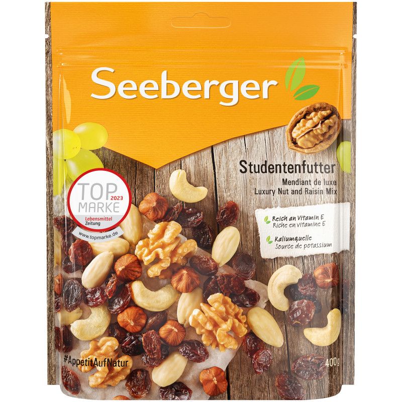 المكونات: خليط مكسرات بنسب متفاوتة (بندق، لوز مقشر، كاجو)، عنب مجفف، جوز (٧٫٥٪)، زيت دوار الشمس. قد يحتوي على آثار من مكسرات شجرية أخرى (مثل المكسرات والفواكه ذات النواة) والفول السوداني.