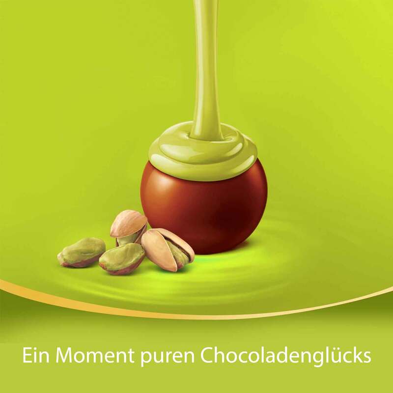 المكونات: سكر، زبدة الكاكاو، دهن نباتي (جوز الهند، نواة النخيل)، مسحوق حليب كامل الدسم، كتلة كاكاو، مسحوق حليب خالي الدسم، لاكتوز، زبدة مركزة، معجون فستق (1.3%)، مستحلب (ليسيثين الصويا)، منكهات، مستخلص الشعير. قد يحتوي على بندق ومكسرات أخرى.