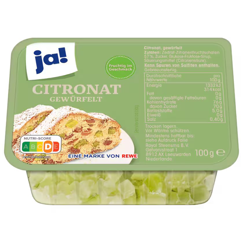 ja! قشر ليمون مُسكّر ١٠٠ غرام قشر ليمون مُسكّر، مُقطّع إلى مكعبات
