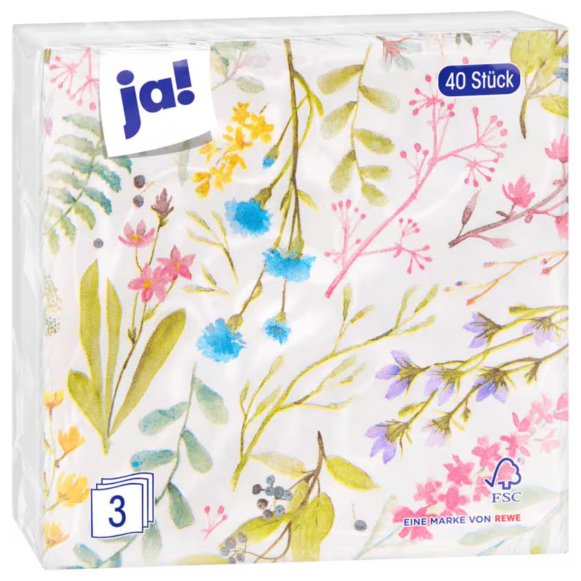 ja! مناديل مزينة بنقوش زهرية، 40 قطعة
