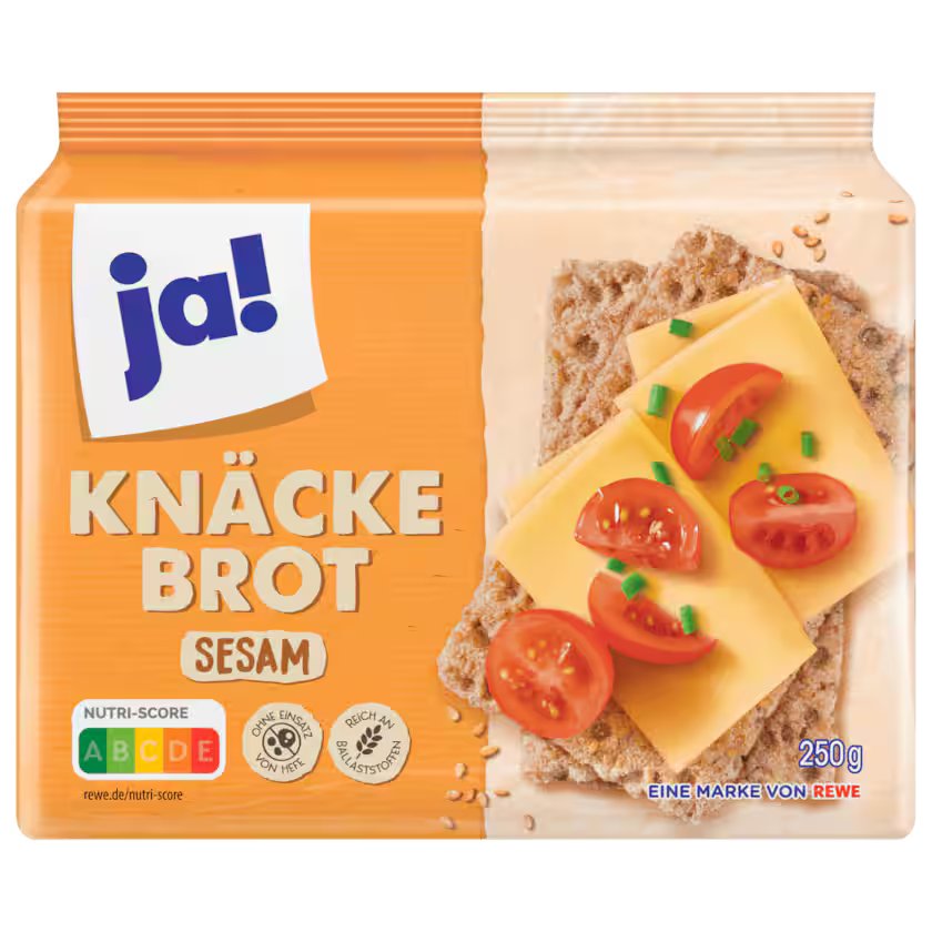 يُستخدم ١٠٢ غرام من دقيق الجاودار الكامل و١١ غرام من بذور السمسم لصنع ١٠٠ غرام من الخبز المقرمش.