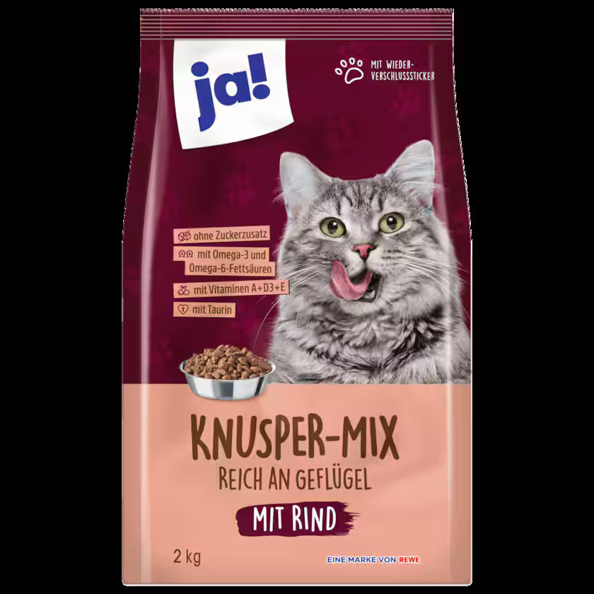 المكونات: حبوب (4% ذرة في الكروكيت المثلثة (1))، لحوم ومشتقات حيوانية (4% لحم بقري في الكروكيت العصوية (2))، مشتقات نباتية (0.07% يوكا مجففة في الكروكيت المثلثة (1))، زيوت ودهون (1% زيت سمك معتمد من مجلس الإشراف البحري* في الكروكيت القلبية الشكل (3))، معادن، خضراوات (4% بازلاء في الكروكيت المستديرة (4))، خمائر.