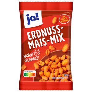 ja! مزيج الفول السوداني والذرة 150 غرام متبلة بالتوابل الحارة