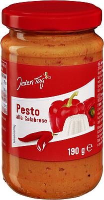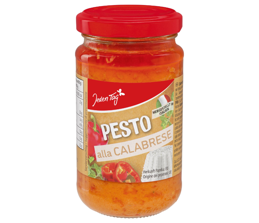 ٤١٪ فلفل أحمر حلو، زيت دوار الشمس، ١٢٪ جبنة ريكوتا (مُنتج مصل اللبن، كريمة، ملح)، ماء، بصل، شراب الجلوكوز، ملح، نشا الذرة، معجون طماطم مُركّز، سكر، زيت زيتون بكر ممتاز، جبنة غرانابادانو (حليب، ملح، منفحة حيوانية، مادة حافظة: ليسوزيم من البيض)، جبنة بيكورينو رومانو (لحم خنزير، ملح، منفحة حيوانية)، مسحوق الفلفل الحار، أوريجانو، مُحمّض: حمض اللاكتيك.