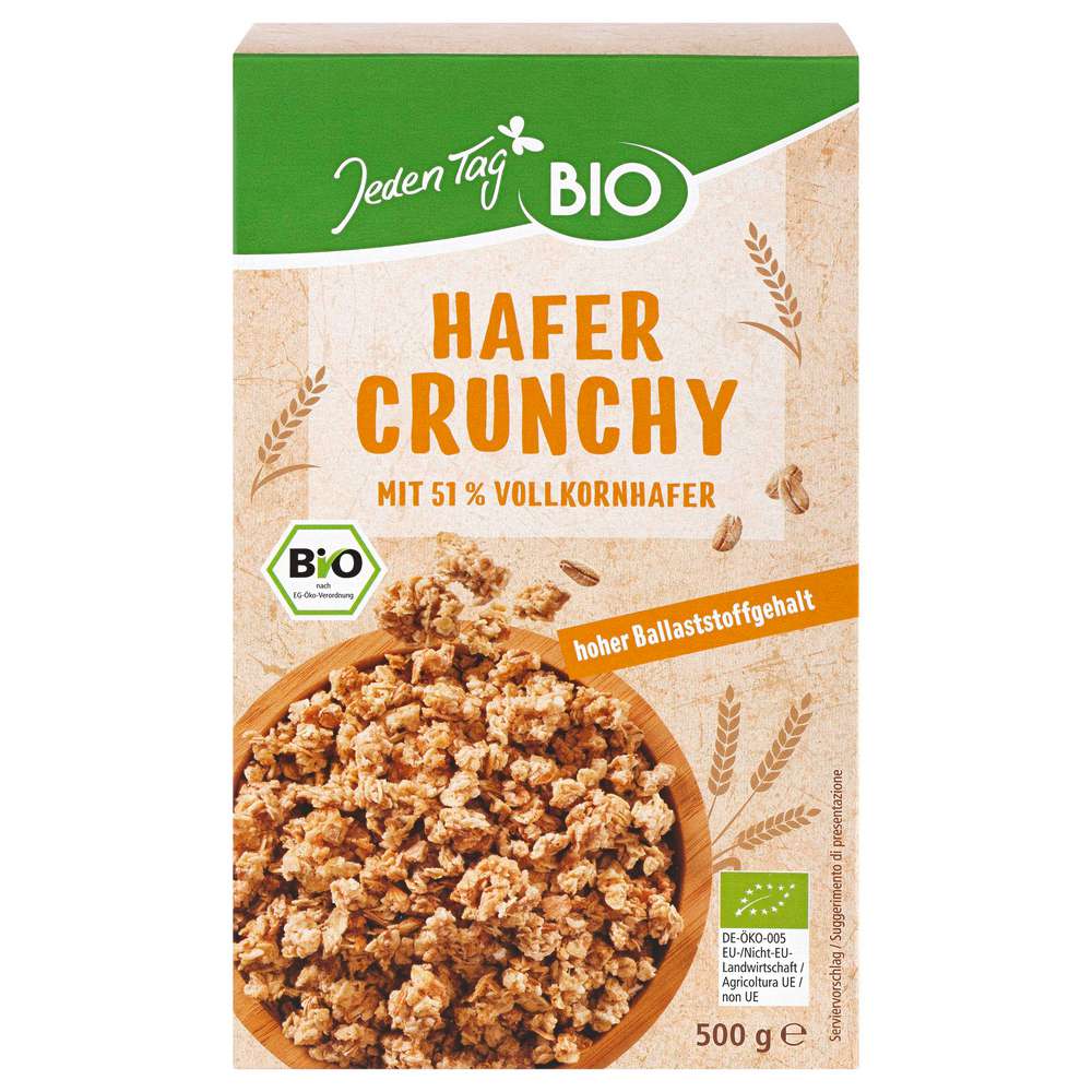 المكونات: 48% رقائق شوفان كاملة الحبة*، رقائق قمح كاملة الحبة*، سكر قصب*، شراب الجلوكوز*، زيت دوار الشمس، جوز هند مجفف*، 3.5% دقيق شوفان كامل الحبة*، عسل*، ملح البحر، مضادات أكسدة: مستخلصات غنية بالتوكوفيرول. *من الزراعة العضوية المعتمدة. قد يحتوي المنتج على آثار من الفول السوداني، الصويا، الحليب، المكسرات، الخردل، السمسم، والترمس.