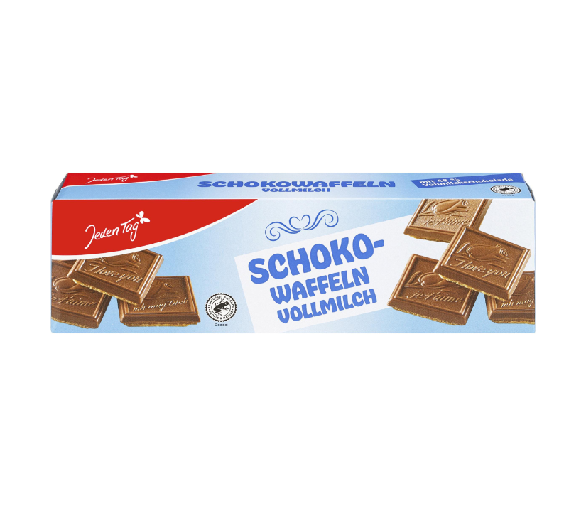وافل محشو بكريمة البندق والكاكاو بنسبة 37% على شوكولاتة حليب بنسبة 47%.