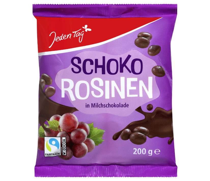 زبيب مغطى بالشوكولاتة بالحليب.