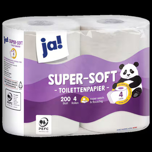 ja! سوبر سوفت ورق تواليت فائق النعومة، 4 طبقات، 4 × 200 ورقة