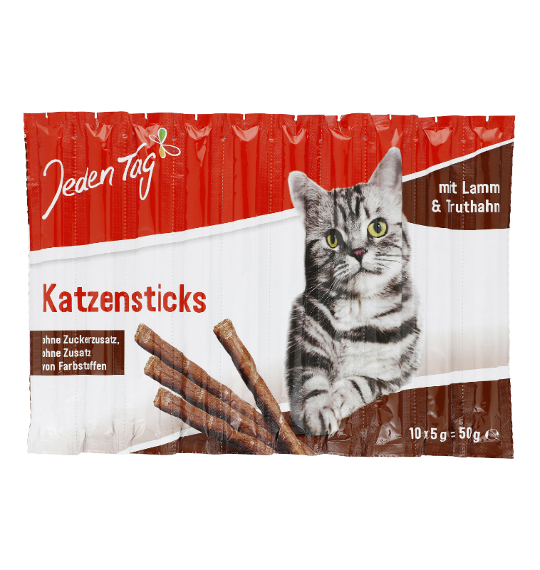 طعام تكميلي للقطط. أعواد مضغ للقطط بنكهة لحم الضأن والديك الرومي.
