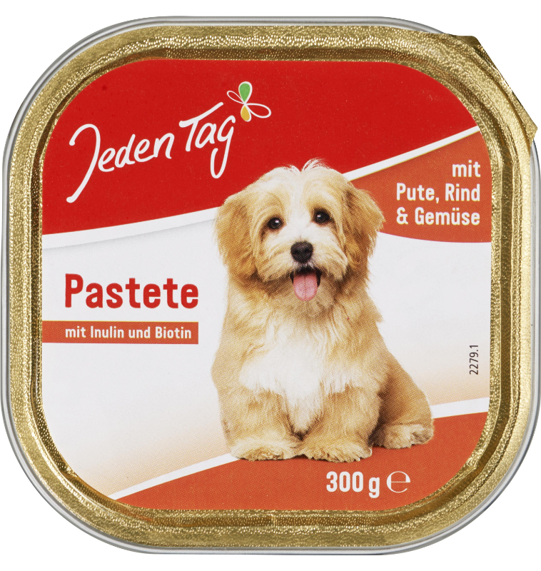 طعام كامل للكلاب البالغة. باتيه مع الديك الرومي ولحم البقر والخضراوات.