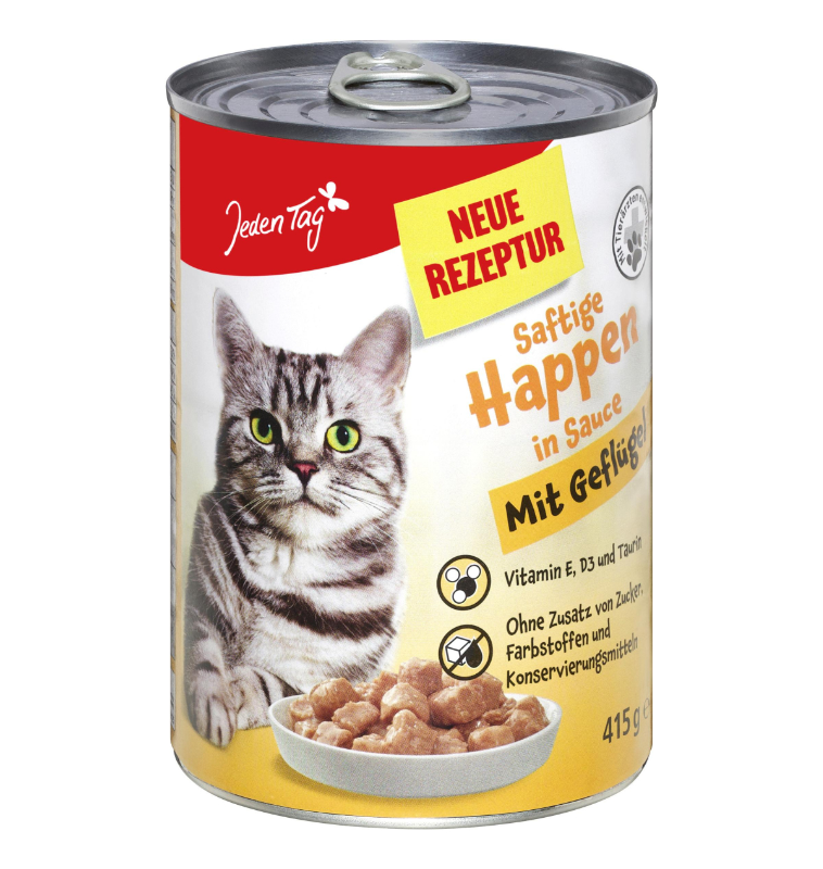 Jeden Tag قطع عصائر القطط في صلصة مع الدواجن 415 غرام
