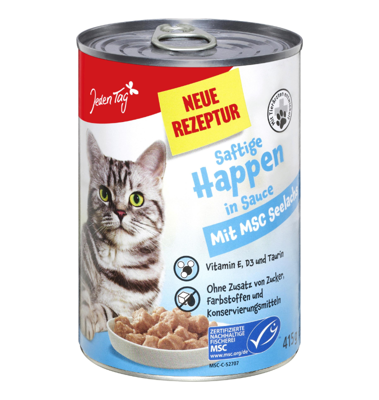 Jeden Tag قطع كاتس سوسكولنت بايتس في صلصة مع سمك بولوك حاصل على شهادة الإشراف البحري 415 غرام