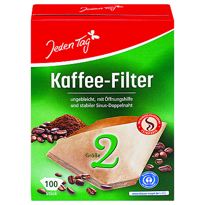 Jeden Tag فلاتر قهوة مقاس 2، 100 قطعة، لون بني طبيعي
