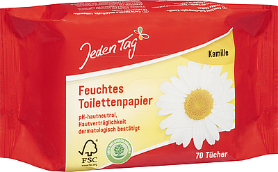 Jeden Tag ورق تواليت رطب برائحة البابونج، قابل للتحلل الحيوي، 70 ورقة