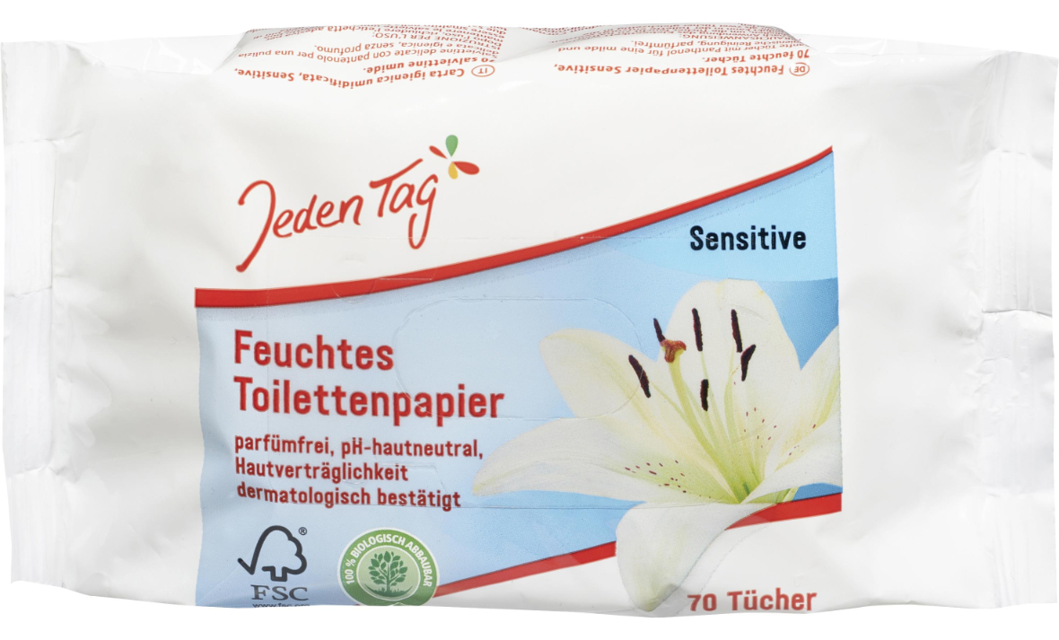 ورق تواليت رطب للبشرة الحساسة، 70 منديل مبلل. لتنظيف لطيف وصحي، خالٍ من العطور.