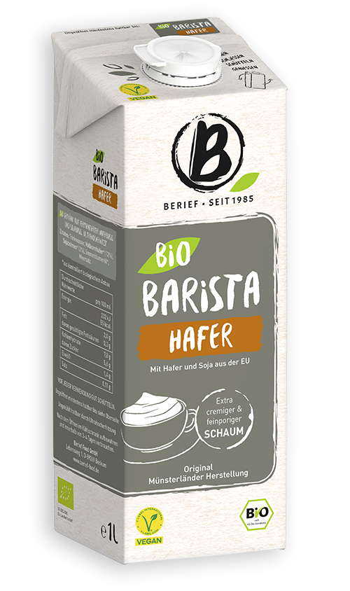ولكن هذا ليس كل شيء: نستخدم في مشروب الشوفان العضوي الخاص بالباريستا مكونات عضوية بالكامل، مثل حبوب الشوفان الكاملة المحلية. نحن نعشق المكونات الطبيعية، ولذلك لا نستخدم أي مواد حافظة. البروتين النباتي عالي الجودة المستخلص من فول الصويا يجعل من مشروب الشوفان العضوي باريستا طبيعيًا لرغوة قهوتكم الكريمية.